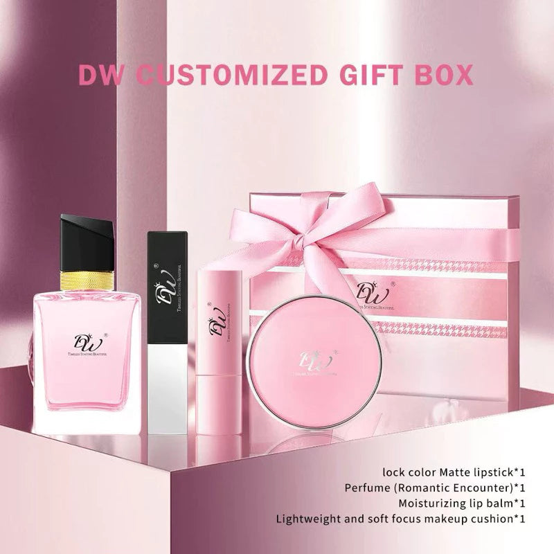 DW 4in1 Advanced Gift Set Girl Makeup Set 【Perfume & Lip Balm & Lipstick & BB Cushion】